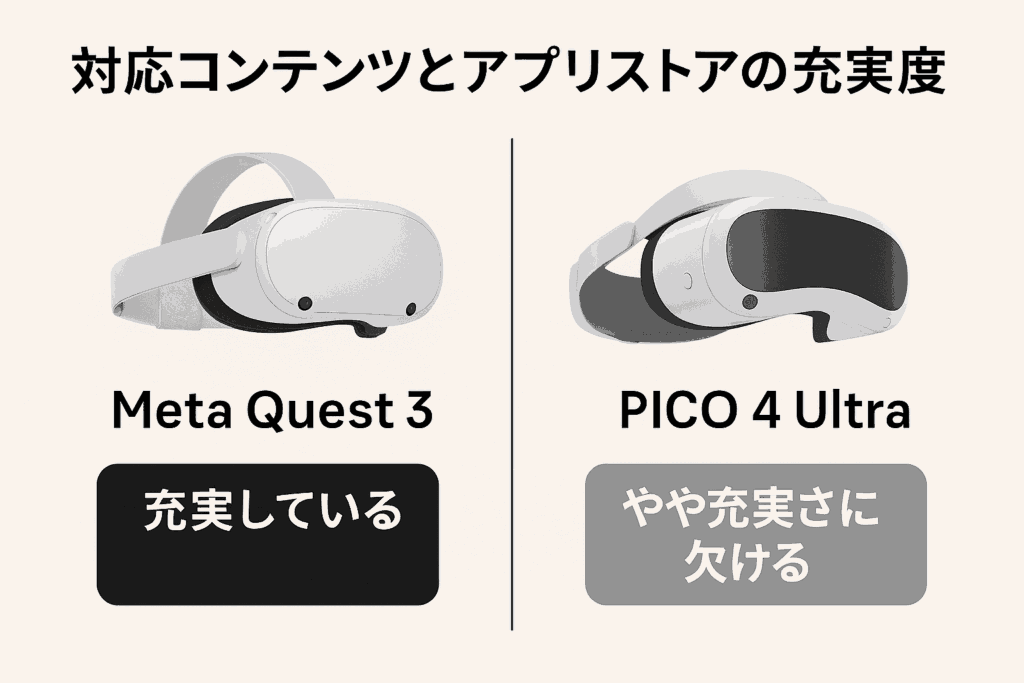 - Meta Quest 3 vs PICO 4 Ultra:対応コンテンツとアプリストアの充実度